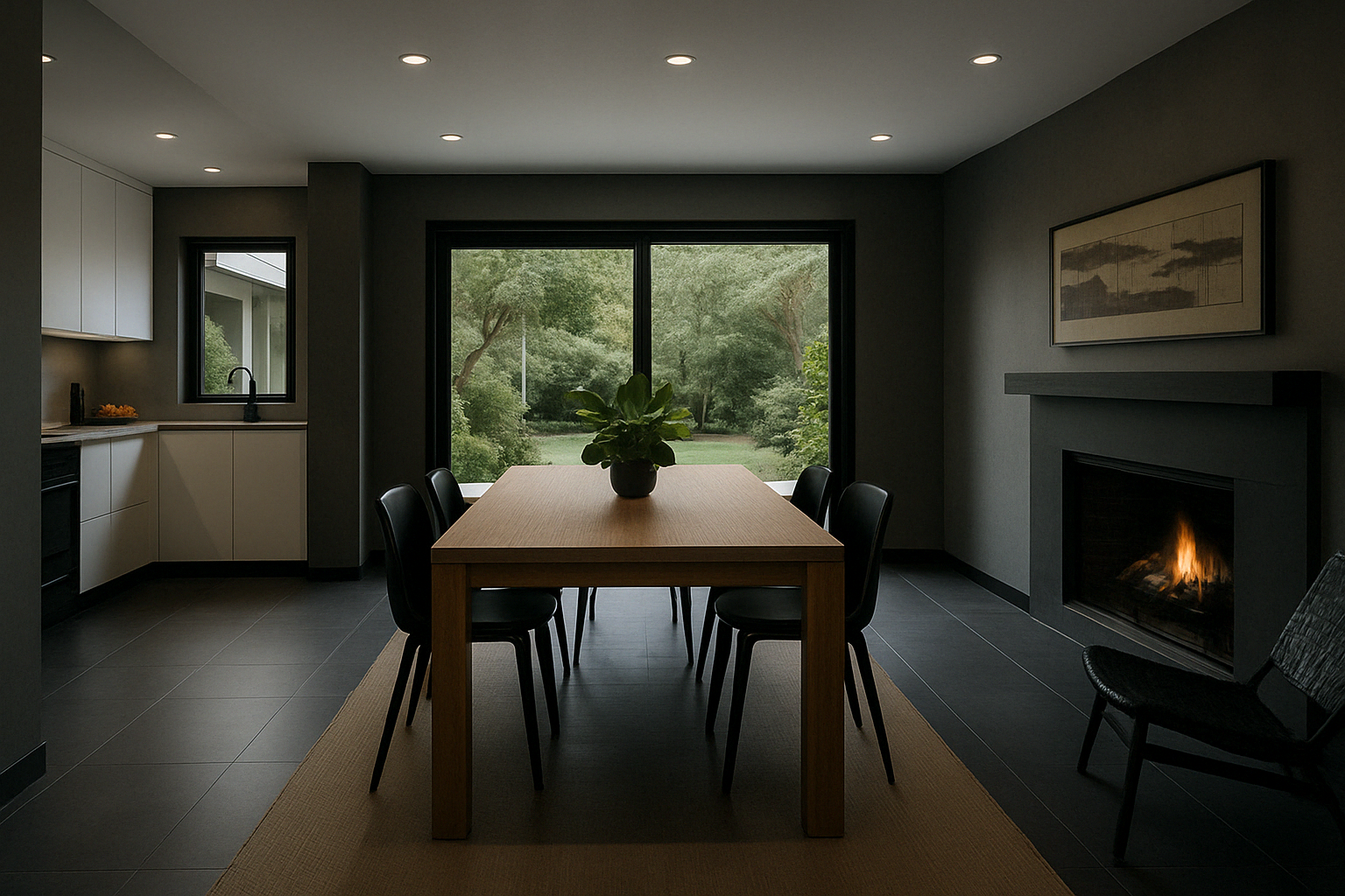 An inviting dining space where timeless materials and simple lines foster connection and ease.